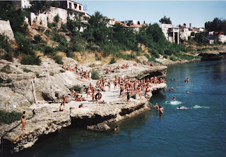 Po vas cijeli dan, u vrijeme ljetnih ferija, čamili smo na stepenicama ispod Doma izviđača i čekali da nam Kema, Peka, Bale i druga veća raja bace staklene boce, a mi se, bijući ko će je uhvatiti, brže-bolje trčali na česmu kod košćele i punu donosili velikoj raji. Što si više puta donosio vodu, imao si veću šansu da te Kema i ostali tranguze bacaju ispod ploče na Bunuru i onda te okruže sve dok se dobro ne naučiš plivati, a ne zapadneš u “pure”.